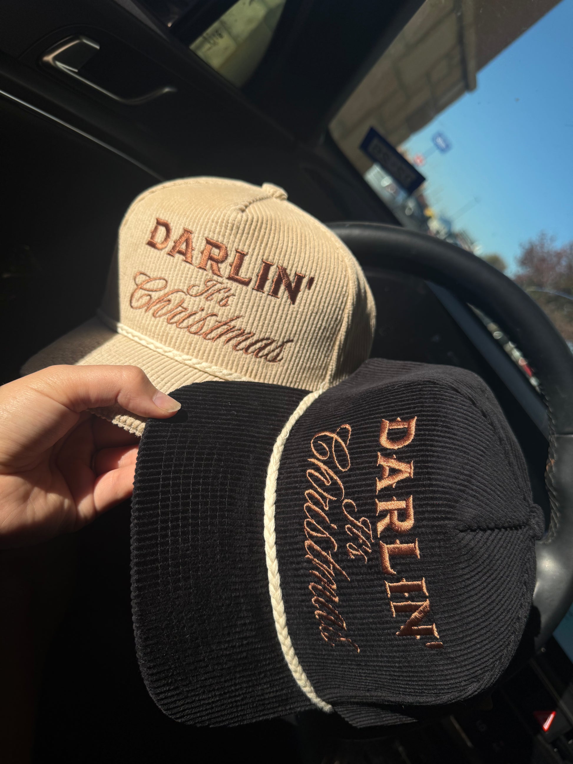Get into the holiday spirit with our cozy Darlin’ It’s Christmas corduroy cap. Designed with soft ribbed corduroy, a vintage inspired rope detail, and warm embroidered lettering, this cap adds the perfect western-festive touch to any outfit. Wear it to holiday markets, or just to bring a little extra cheer to your everyday look. Available in both classic black and neutral cream. 🎄